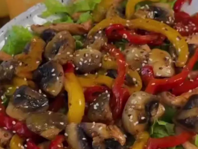 Іноді хочеться страви, що виглядає як із ресторану, готується без нервів і при цьому не залишає почуття тяжкості. Цей салат — саме з таких. Соковита курка в теріяки, теплі овочі, свіже листя салату та проста, але дуже зібрана заправка. Ідеальний для вечері після довгого дня або для ситуації "хочу смачно, але без подвигу біля плити".