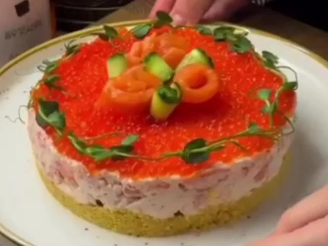 Фінальний штрих – прикраса. Зверху можна викласти акуратні трояндочки з форелі, додати трохи червоної ікри для яскравого акценту, тонко нарізаний свіжий огірок і мікрозелень. Виходить не просто закуска, а справжня прикраса столу.