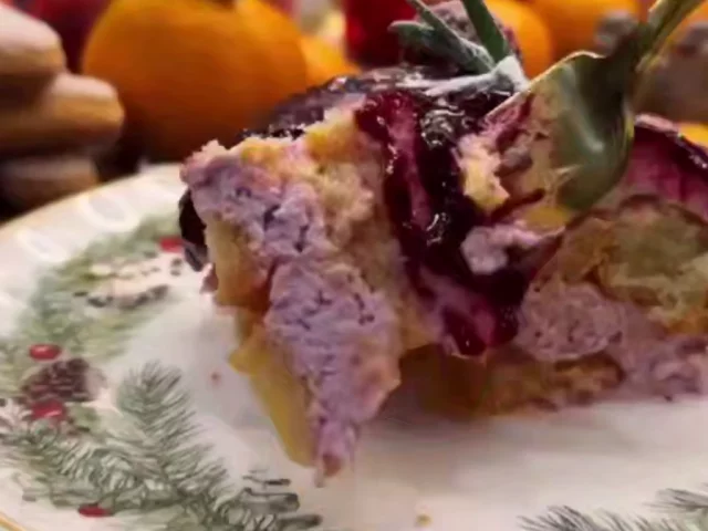 Останній штрих – брусничний соус. Заберіть десерт у холодильник на 3–4 години, щоб він настоявся і став ще смачнішим.
