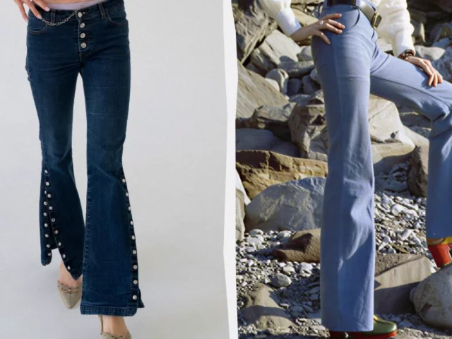 Клеш знову на сцені, але без ретро-драми. Зараз це чисті, акуратні лінії та максимум елегантності. Головний бонус - візуальна магія: висока посадка + розширення від коліна = ноги від вух. Особливо ефектно вони працюють із підборами. Навіть найпростіша цибуля раптово починає виглядати як «я намагалася (але ніби ні)».