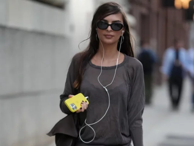 И лучшее доказательство — звездный стритстайл. Белла Хадид, Лили-Роуз Депп, Зендея и Эмили Ратаковски регулярно попадают в объективы папарацци с подчеркнуто видимыми проводами. Они выбиваются из-под пальто, лежат поверх свитеров, свисают на груди — как будто наушники сняли секунду назад, но решили не прятать. Последний показательный эпизод — Хейли Бибер в Австралии: расслабленный образ, базовые вещи и белый провод, который на фоне загара выглядел почти как ювелирное украшение. Чем привычнее предмет — тем сильнее он работает, когда его вдруг делают главным акцентом.